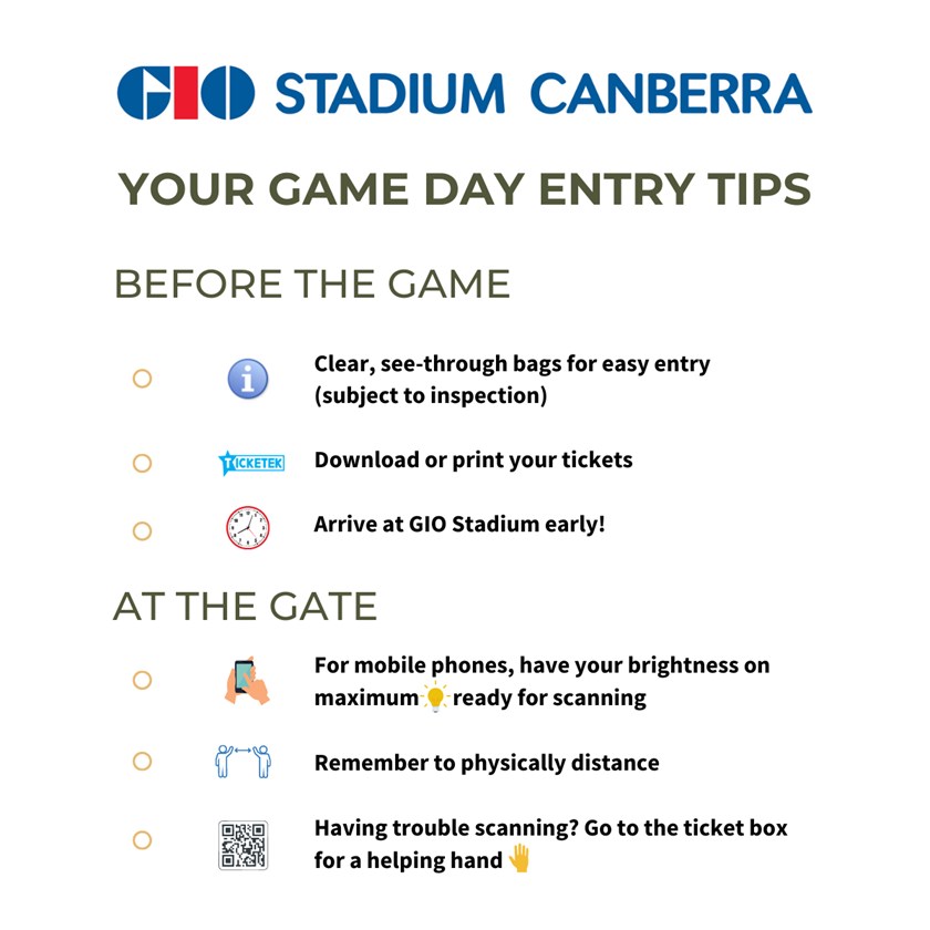 GIO Stadium Canberra has been granted an exemption to have 100% capacity for outdoor seating at matches. There are still a number of important restrictions and rules in place for attending matches.
