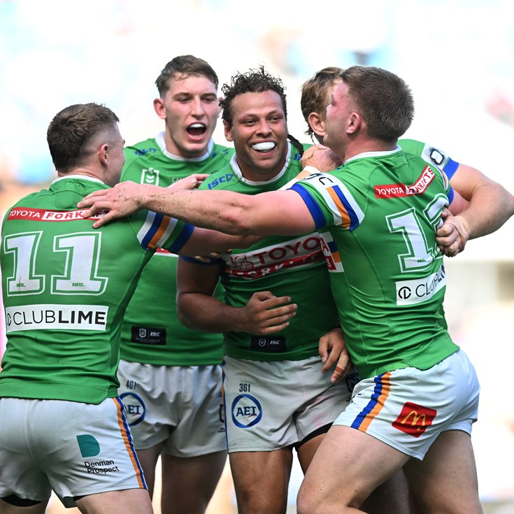 However, the Raiders fought back to score the first try of the night through Jordan Rapana who caught a beautiful cut-out from fullback Caleb Aekins. The Raiders took an early 4-2 lead in the opening 10 minutes.