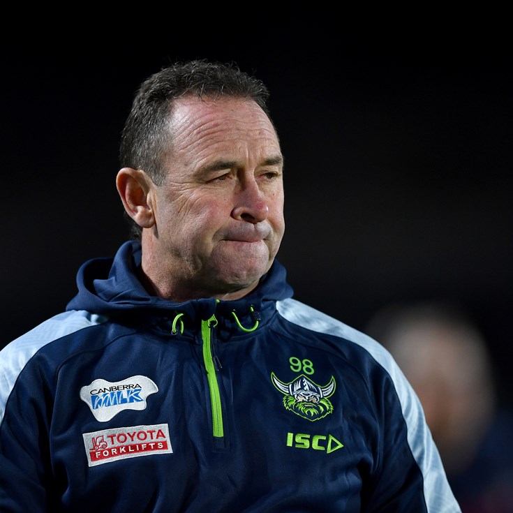 Interchange for Roosters is number 14 Adam KeighranInterchange for Raiders is number 9 Tom Starling