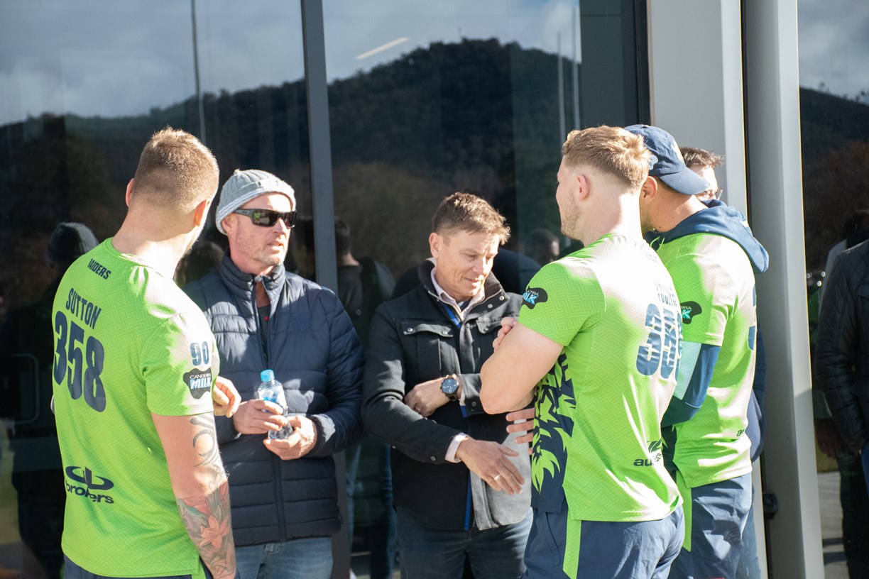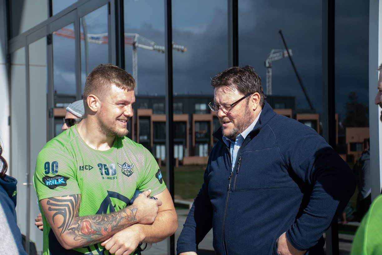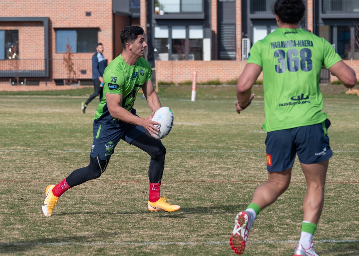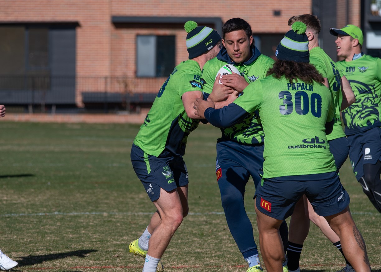 The Canberra Raiders completed their final session before taking on the Broncos and caught up with a few familiar faces afterwards.