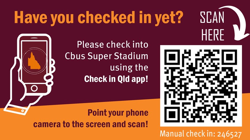 Please check-in via the Check-inQld app when entering Cbus Super Stadium.