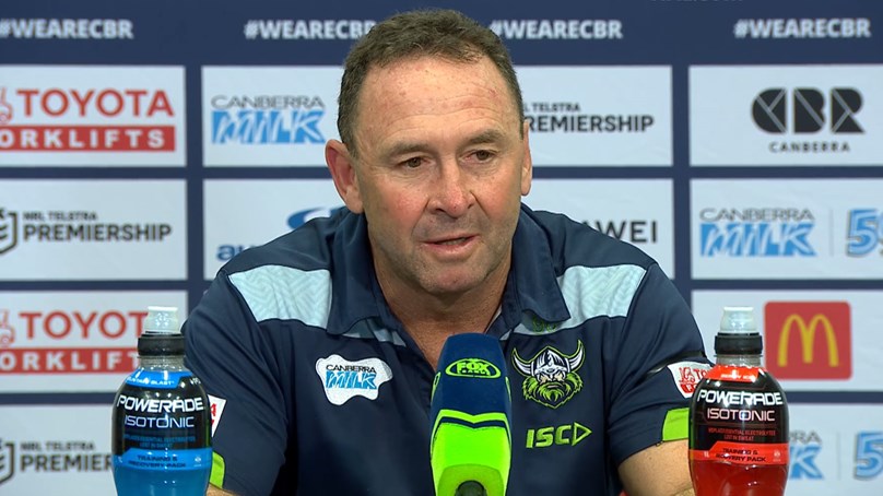 Ricky Stuart chats to the media after his team's Round 23 game against the Sea Eagles