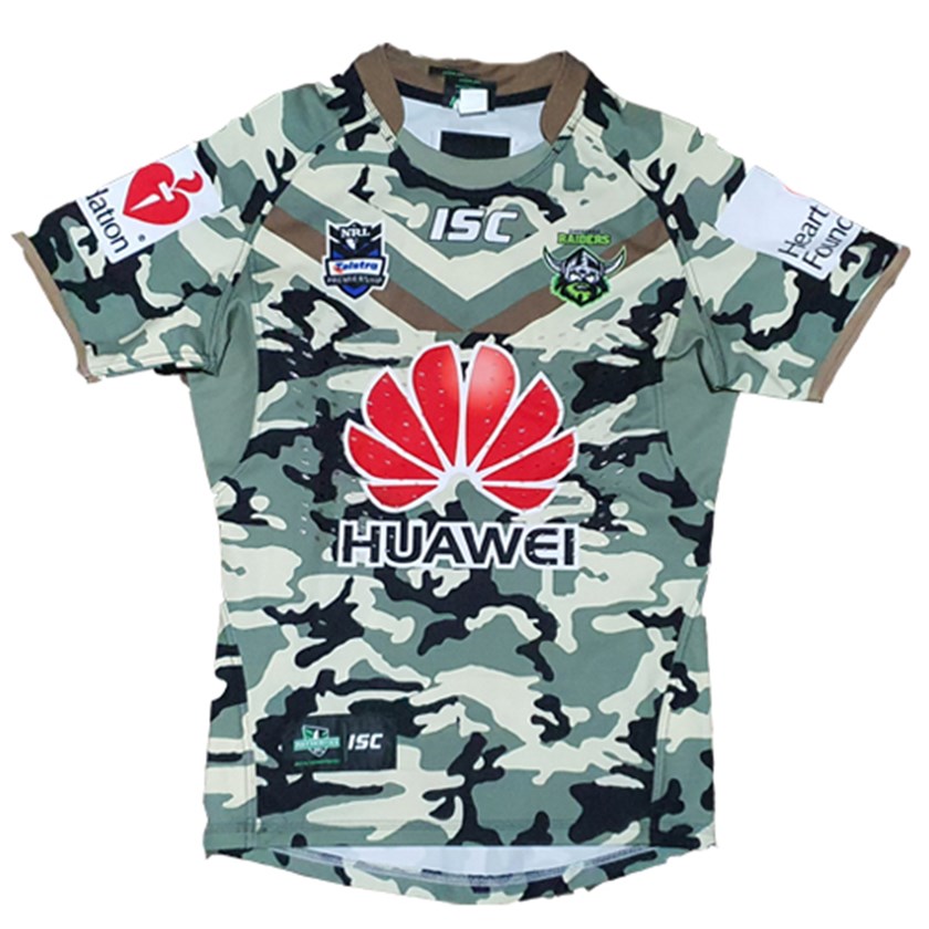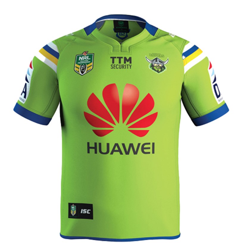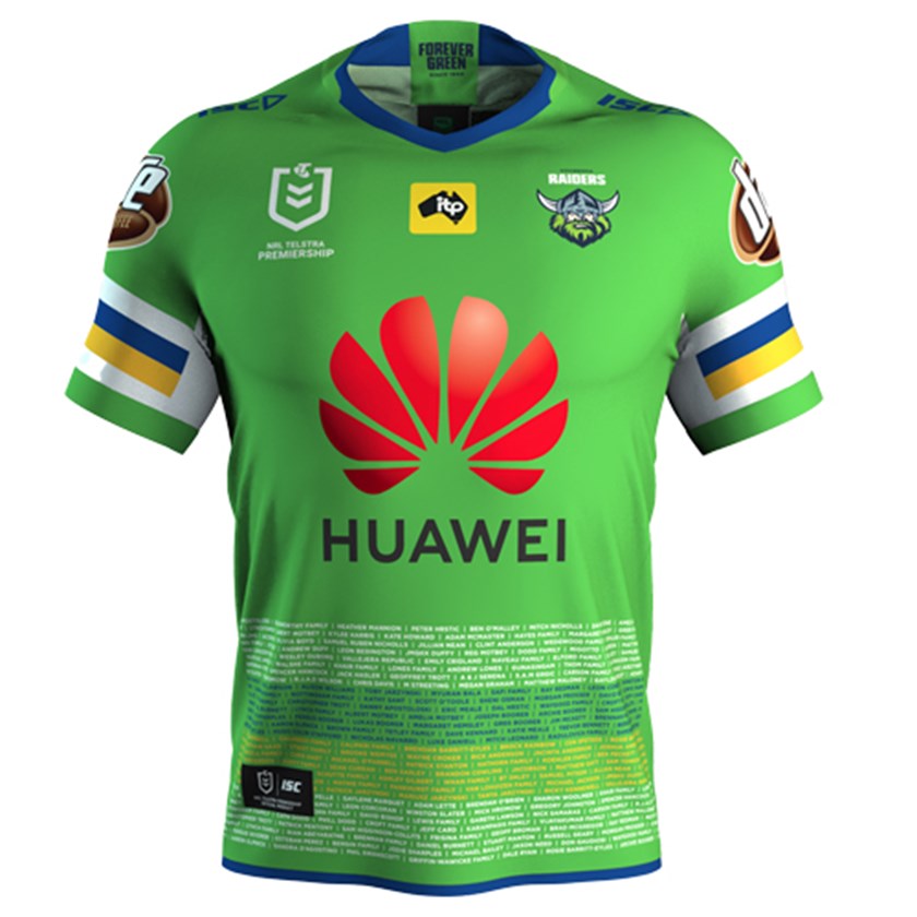 The jersey produced by ISC also featured the NRL Telstra Premiership and Raiders logos, along with major sponsor Huawei.