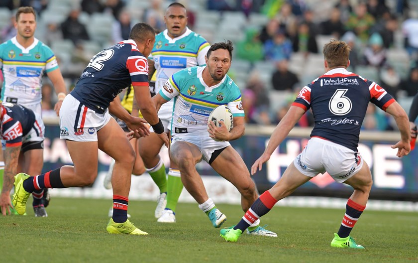 The Raiders traditional blue, yellow and green hoops featured across the chest and around the sleeves of the white and teale jersey. The club would also auction off the matchworn jerseys with proceeds going to the Ricky Stuart Foundation.