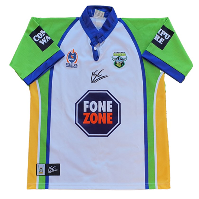 The jersey carried the Telstra Premiership and Raiders logos and the Major Sponsor was Fone Zone with Compuware on the sleeves. The jersey was produced by ISC.