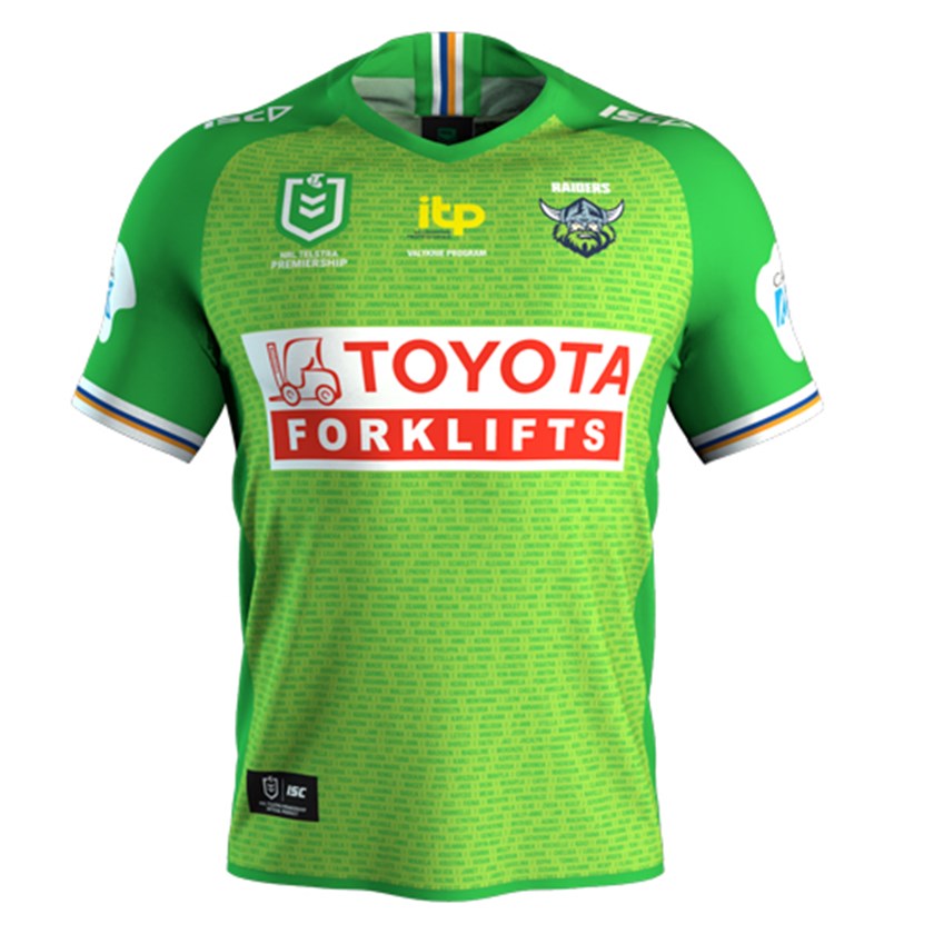 The jersey carried the Toyota Forklifts logo who helped with the initiative, along with the Raiders and Telstra Premiership logos.