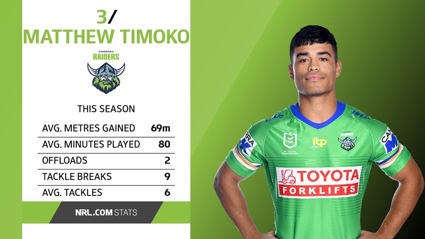 It's been an impressive start to the season for young Timoko, who has proven to be a lethal weapon outside of Jack Wighton on the left side breaking 11 tackles in the first two games of the season.