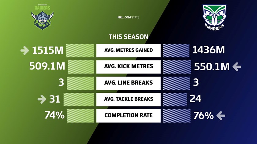 The Raiders and Warriors have met 43 times since 1998, with the Raiders having won 22 meetings to the Warriors 21. The Raiders will be hoping to extend that lead on Saturday but the Warriors won't go down without a fight.