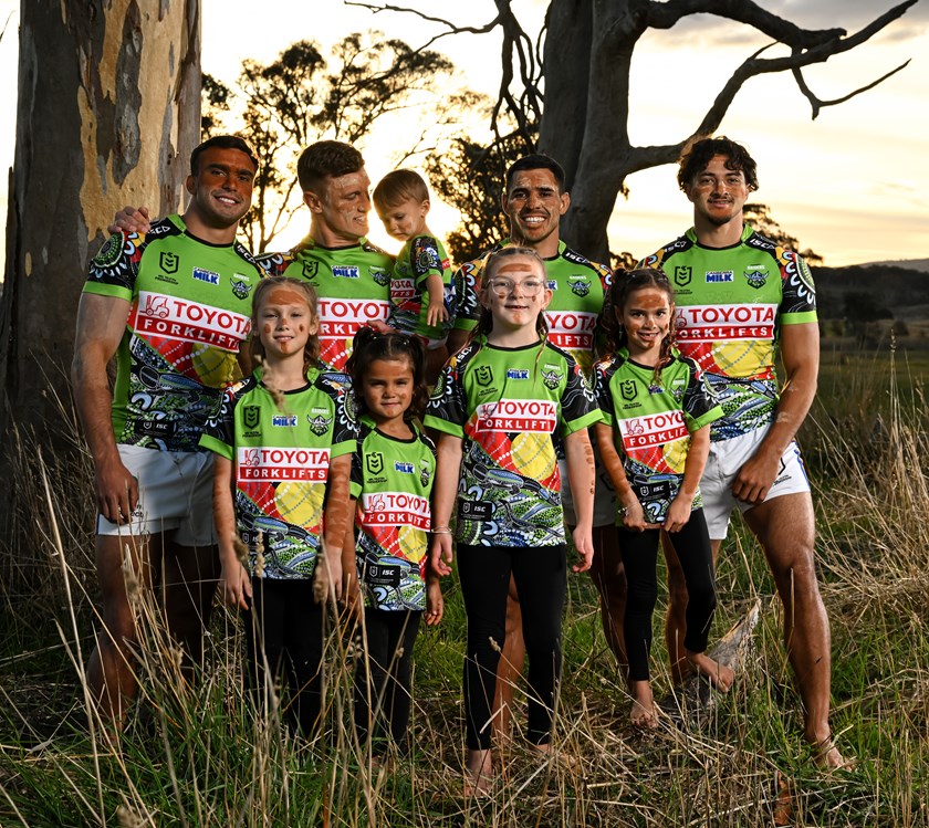 Raiders Indigenous and Torres Strait Island players Jack Wighton, Jamal Fogarty, Xavier Savage and Elijah Anderson all took part in a special photo shoot late last week to help launch this year’s jersey. With Jack Wighton and Jamal Fogarty embracing their ties to family by also having photos with their children.