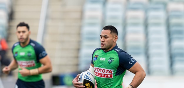 After a big hit from Semi Valemei forcing a drop ball from the Rabbitohs, the Raiders rampaged from one end of the field to the other.