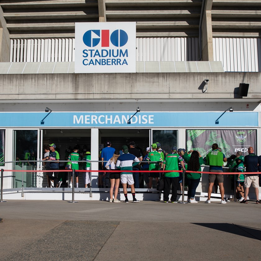Raiders Shop outlets will be open on the West Forecourt and South Concourse. These outlets will open at 3:30pm and close at the end of NRL half-time (approx. 8:25pm).