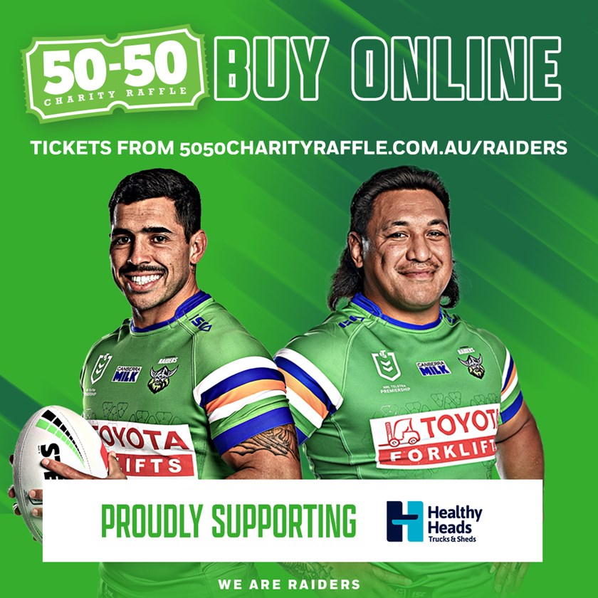 Raffle tickets can be purchased online via 5050charityraffle.com.au/raiders and at the Game on Sunday afternoon.