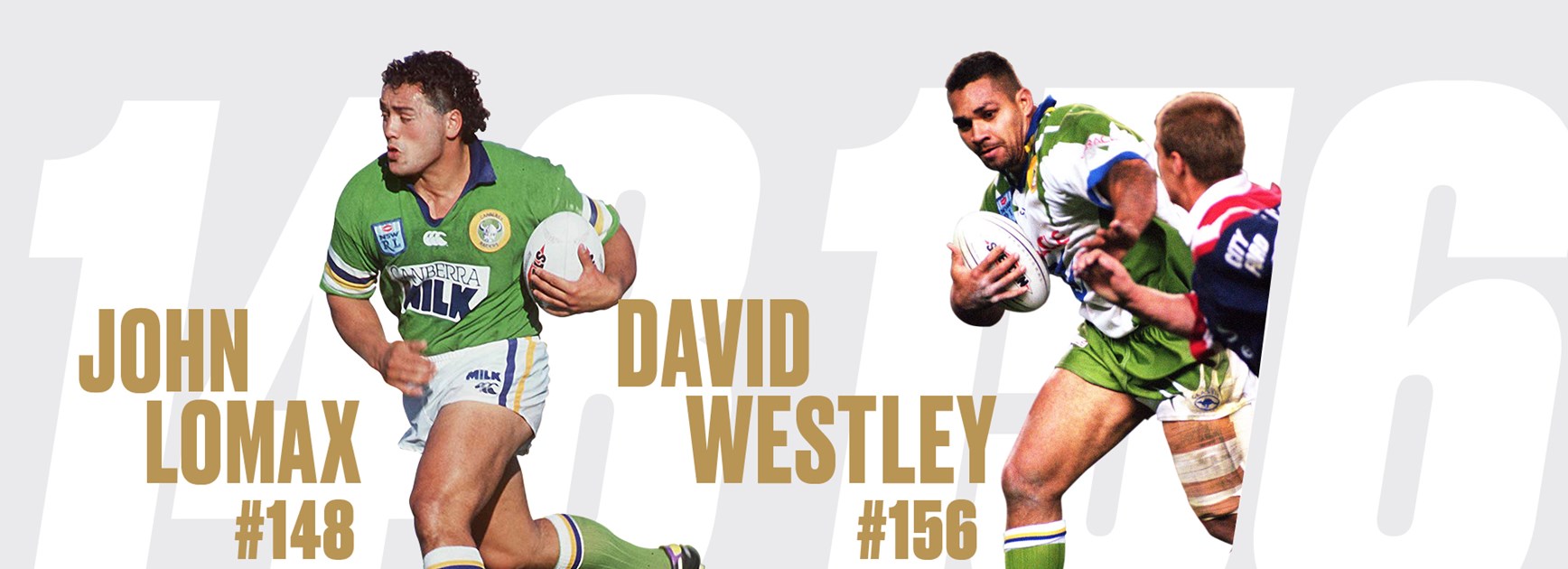 John Lomax (Raider #148) and David Westley (Raider #156) were inducted pre-match at GIO Stadium Canberra in front of a host of past Raiders players at the annual Forever Green game.