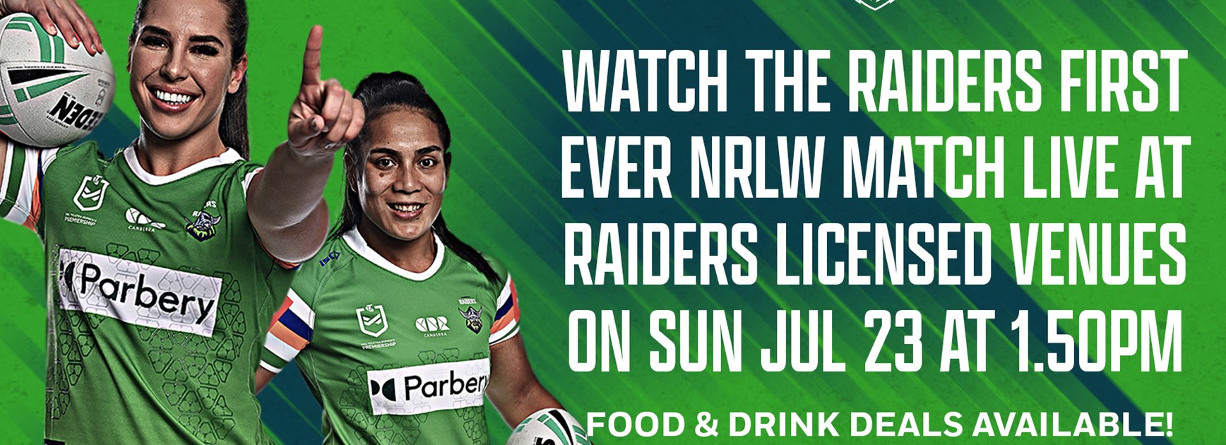 The Canberra Raiders NRLW team will play their first ever match in the competition on Sunday July 23 at 1.50pm, with Raiders members and fans invited to attend any of the Raiders Group clubs around the ACT and Queanbeyan to help celebrate the milestone!