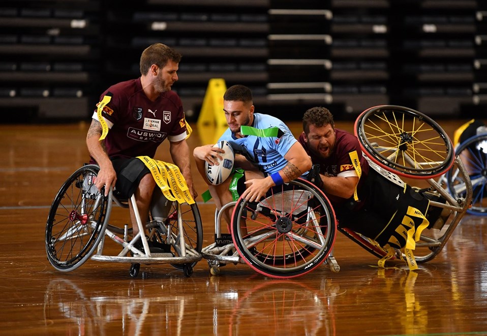 Combatants last weekend in the NSW Wheelchair Rugby League grand final – Wests Tigers skipper Brad Grove and Parramatta captain Diab Karim – have put that result aside to lead the Blues together against Queensland in a few days time.
