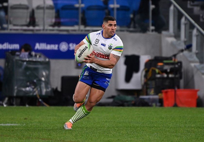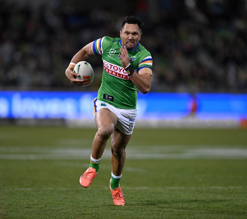 Winger for Warriors is number 5 Marcelo MontoyaWinger for Raiders is number 5 Jordan Rapana