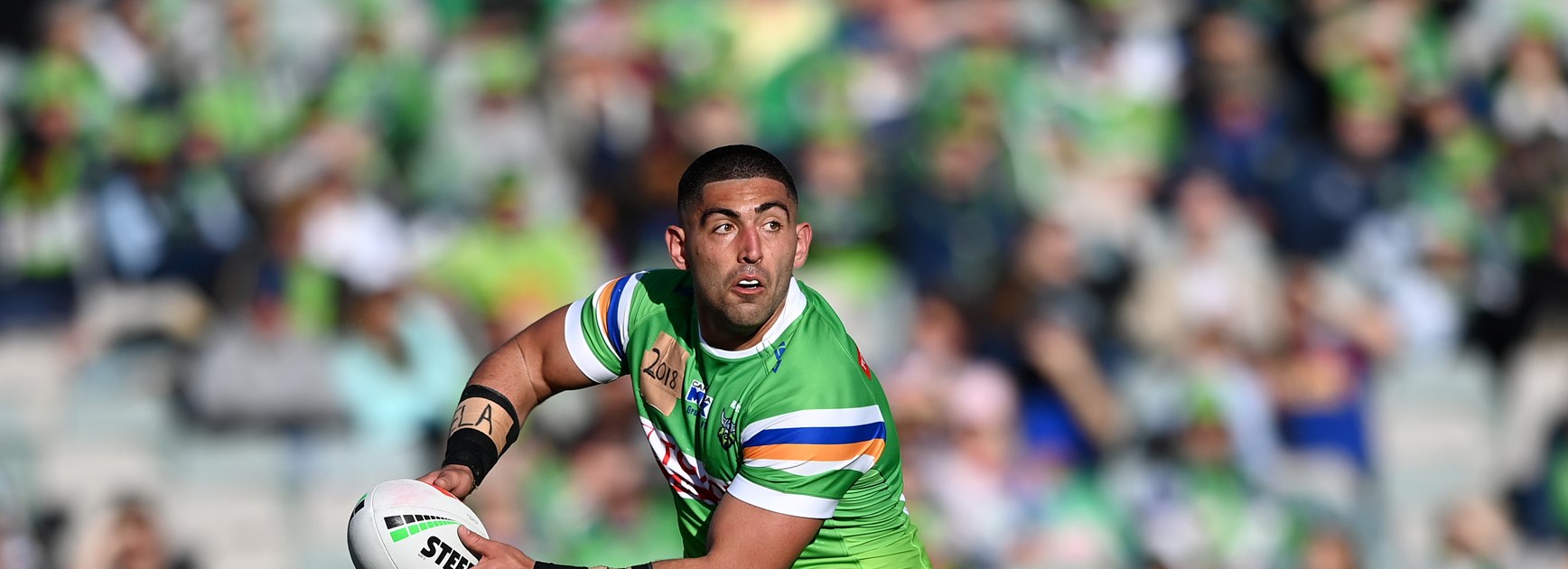 Winger for Raiders is number 5 Nick CotricWinger for Wests Tigers is number 5 Charlie Staines