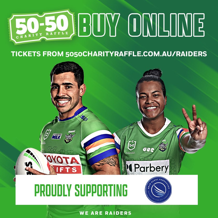5050charityraffle.com.au/raiders and at the Game on Sunday