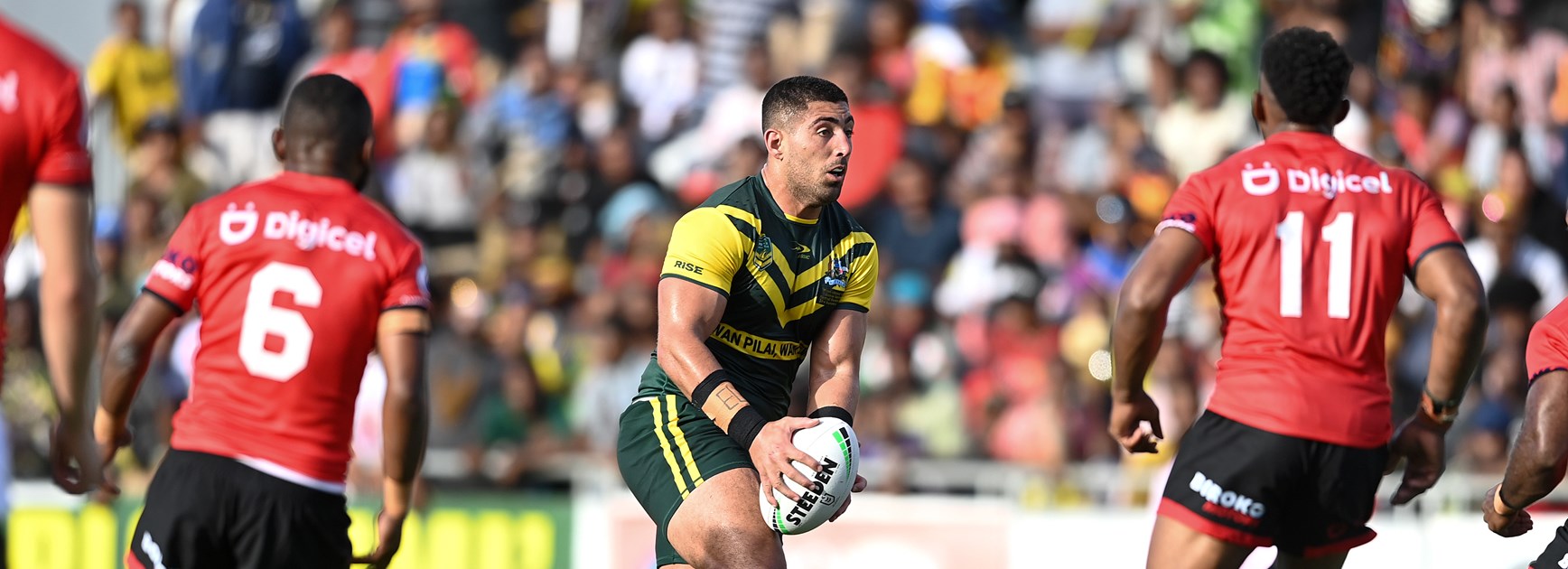 A try that summed up the effort and passion shown by the PNG PM's XIII. Cruise Ten had no right to score at first as he took the ball into multiple green and gold jerseys, but kept fighting to emerge over the line and bring almost everyone at Santos National Football Stadium to their feet once again.