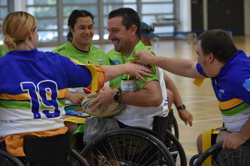 On the Saturday, we held an exhibition match that featured NSW Wheelchair Rugby League players Toby Popple and Zac Carl, as well as a number of Rolling Raiders representatives, which was officiated by Steve Hewson.