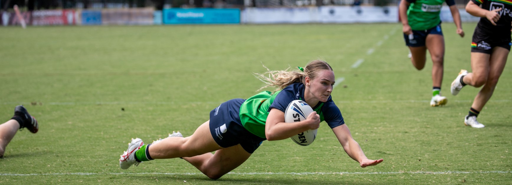 Raiders' fullback Lara Cosgrove was a standout, crossing for the first three Canberra tries and set-up the side for a big win.