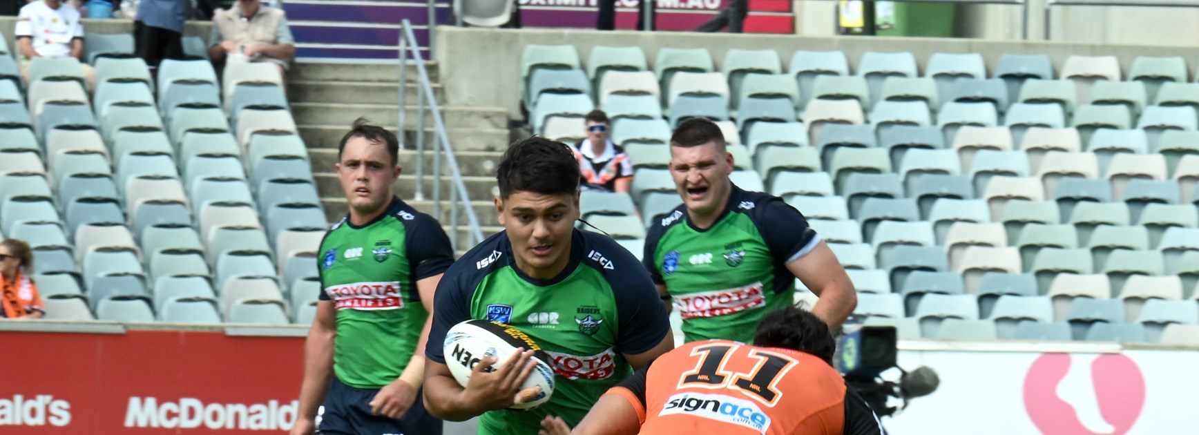 The Raiders Jersey Flegg team have made it two wins from two after a comprehensive 36-0 win over the Wests Tigers at GIO Stadium Canberra on Saturday.