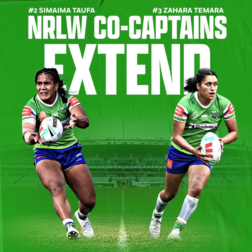 The Canberra Raiders are pleased to announce the re-signing of the club’s inaugural NRLW co-captains, Simaima Taufa and Zahara Temara.