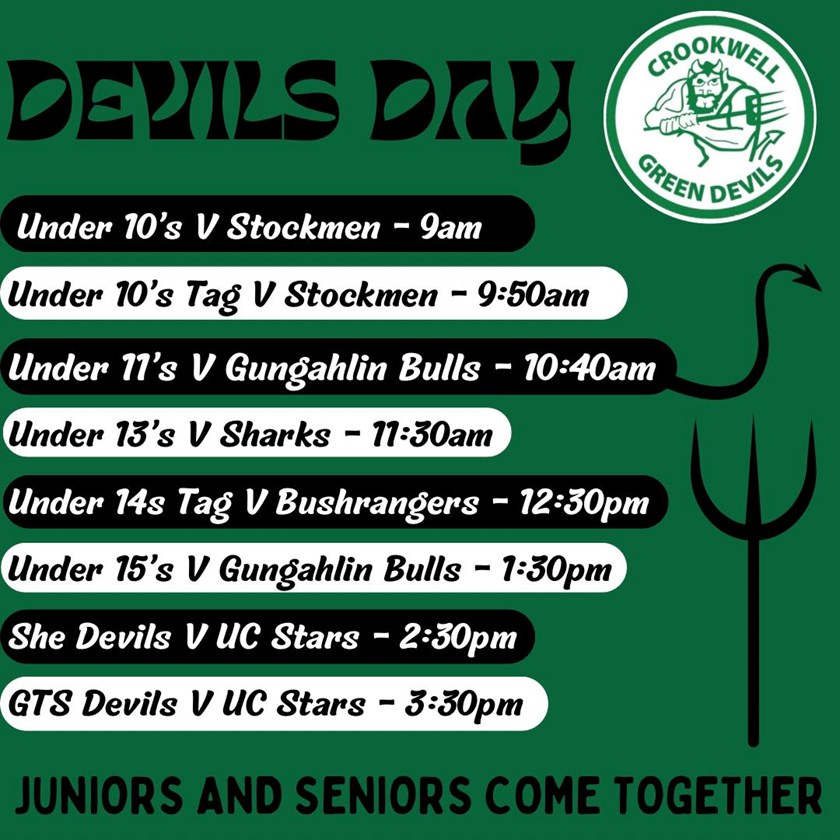 On Sunday, the Green Devils and She Devils will showcase their junior and senior sides in a big day of Rugby League at Crookwell Memorial Oval.