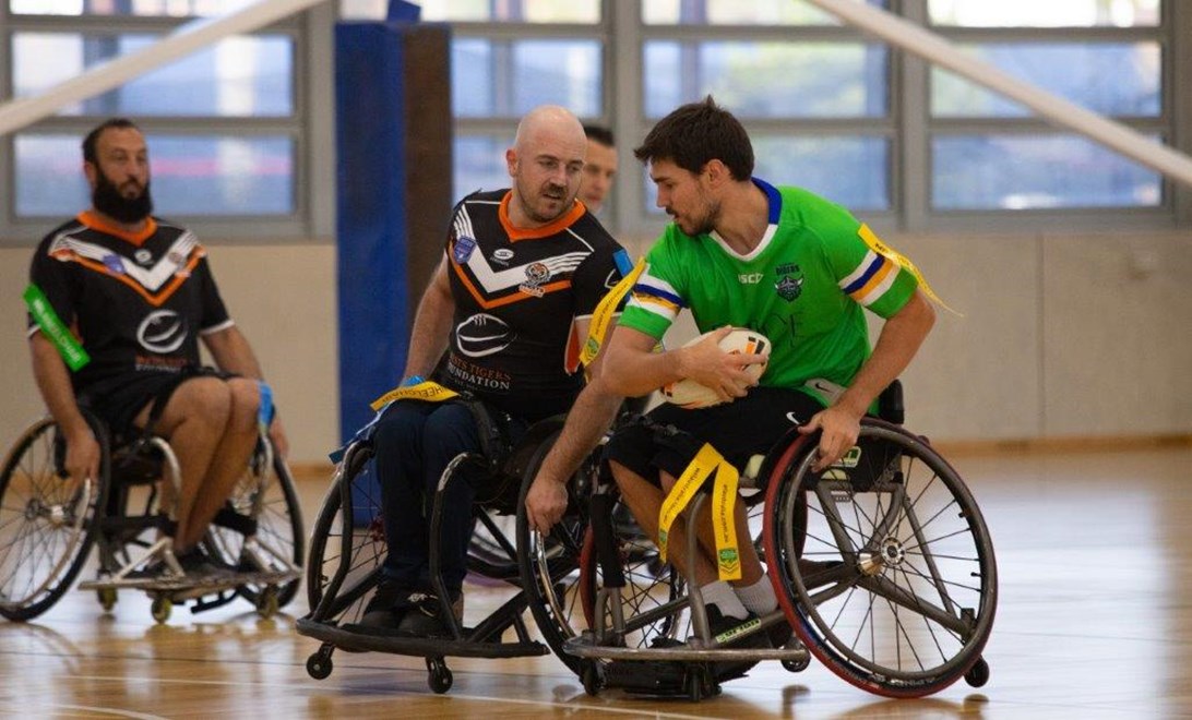 The Rolling Raiders have recorded their first victory in the NSW Cup Wheelchair Rugby League competition, rolling away with a comprehensive 56-22 victory in front of a large home crowd at Wagga PCYC on Saturday.