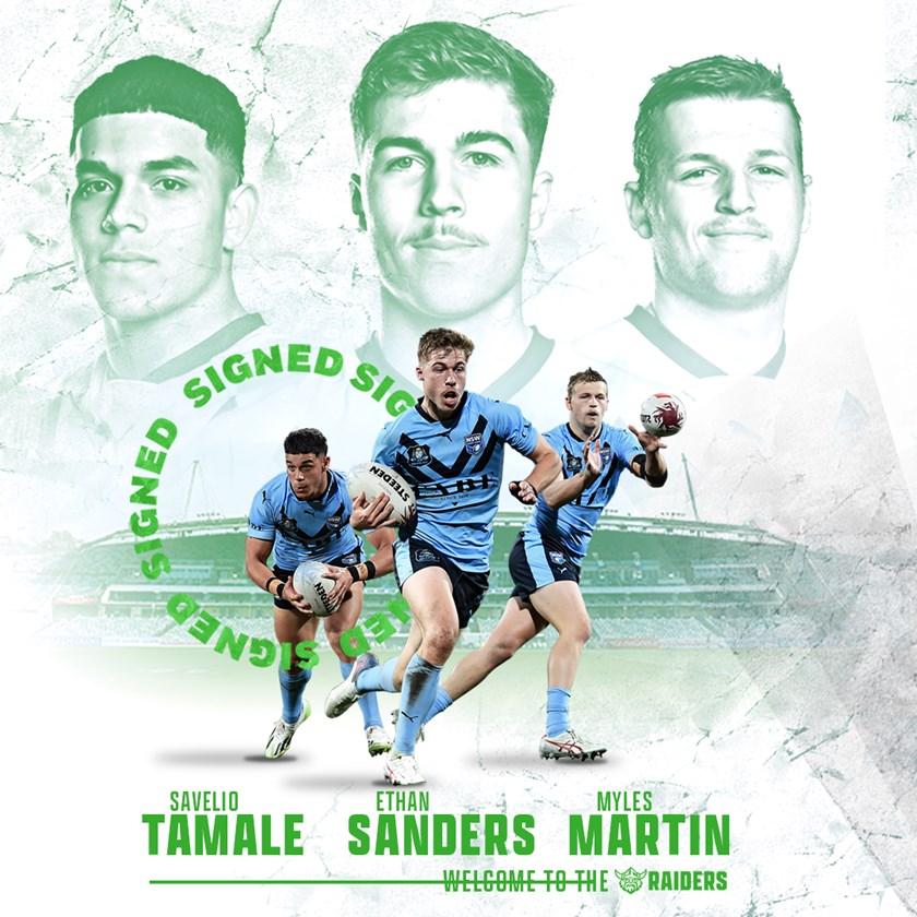 The Canberra Raiders have announced the signings of three former NSW under 19s Origin stars, with Ethan Sanders, Myles Martin and Savelio Tamale all set to join the club for the beginning of the 2025 season.