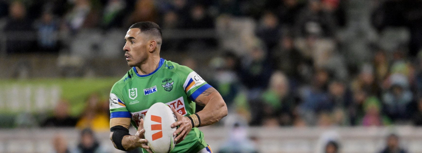 Winger for Bulldogs is number 2 Jacob KirazWinger for Raiders is number 2 Jordan Rapana