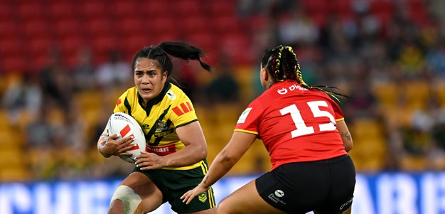Come the 44th minute and Penitani crossed for her first try as a Jillaroo before Kelly took off from a scrum 10 metres out from her own line and sprinted 90 metres to make it 56-0.