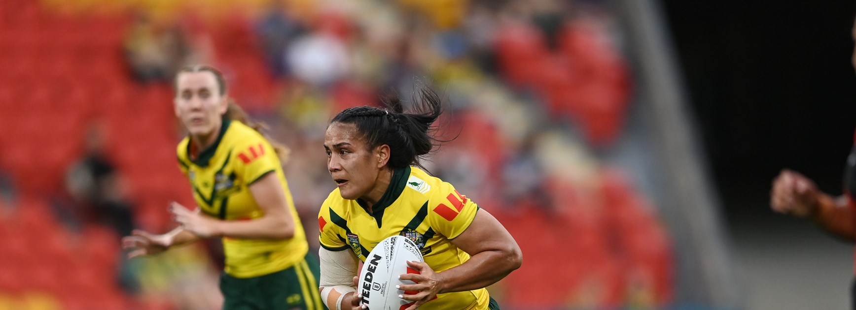 The Jillaroos then produced a long-range try from the halfway line with Jess Sergis delivering the final pass for Whitfeld to race away for her second try. Aiken converted for a 32-0 lead.