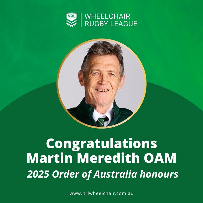 Martin Meredith OAM: Chairman of Wheelchair Rugby League Australia, awarded an OAM for his efforts in developing wheelchair rugby league and his strong support of CRRL’s wheelchair programs.