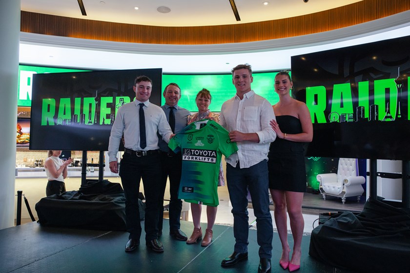 Dad Matthew, Mum Tracey, brother Jack and partner Kirby were all on hand to present Owen with his debut jersey in Las Vegas on Wednesday night.