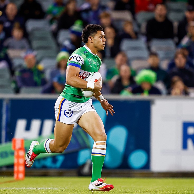 Winger for Raiders is number 5 Xavier SavageWinger for Sharks is number 5 Ronaldo Mulitalo