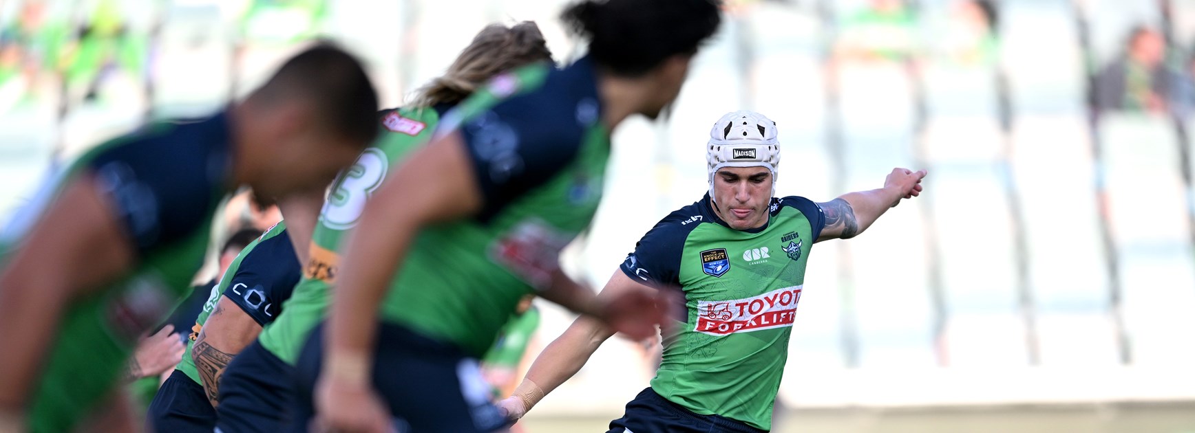Winger for Warriors is number 5 Morgan HarperWinger for Raiders is number 9 Ethan Alaia