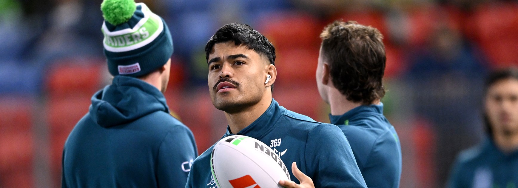 Fullback for Knights is number 1 Kalyn PongaFullback for Raiders is number 1 Kaeo Weekes
