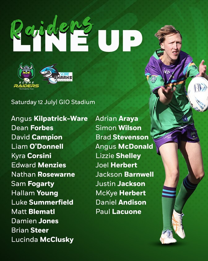 The Score Raiders team to take on the Score Sharks ahead of NRLW's Round 2 fixture on Saturday at GIO Stadium Canberra has been released.