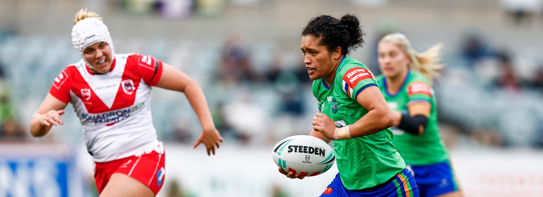 Fullback for Raiders is number 1 Cheyelle Robins-RetiFullback for Sharks is number 1 Emma Verran