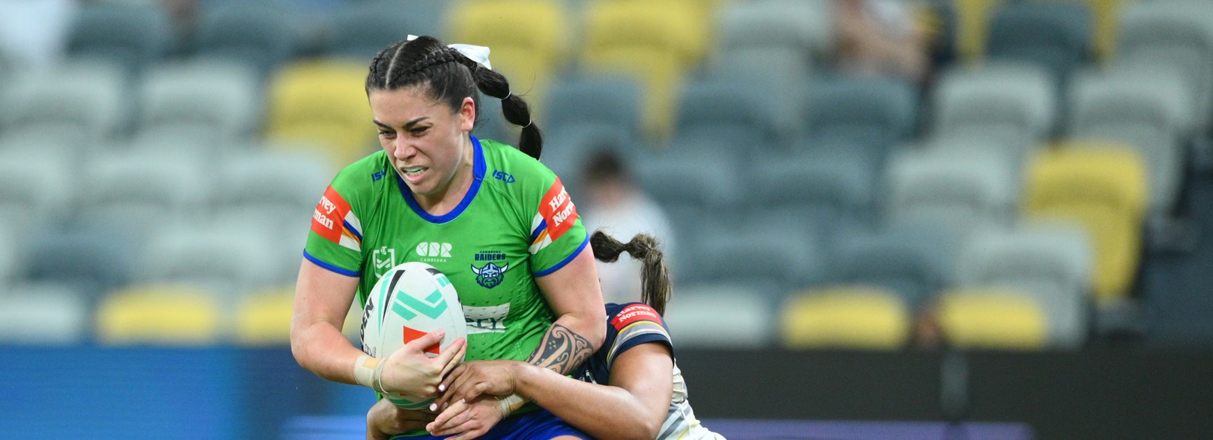 The Raiders almost went the distance with seven minutes to go in the half as Elise Simpson took ankles up the left sideline, running sixty metres before being dragged into touch.