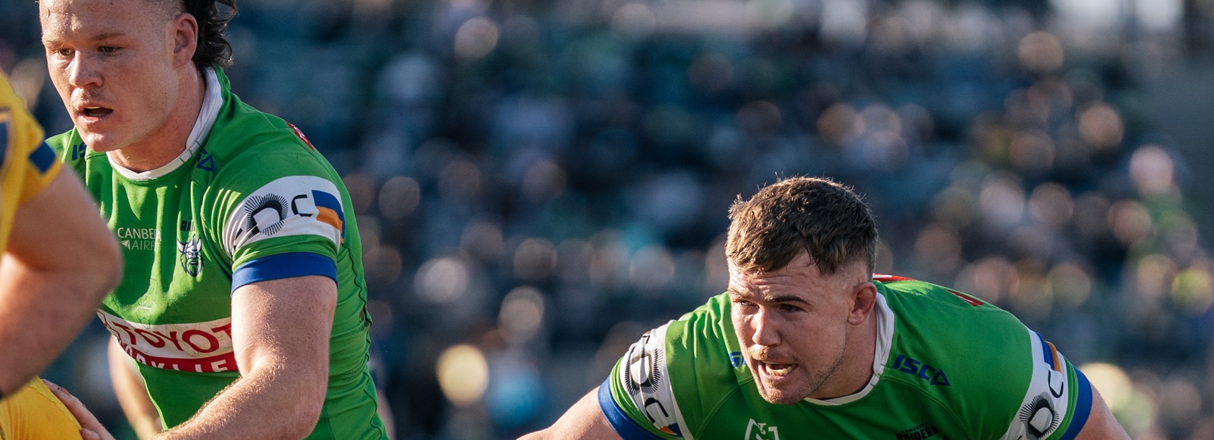 Winger for Raiders is number 2 Jed StuartWinger for Knights is number 2 Dominic Young
