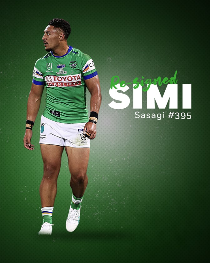 The Canberra Raiders have announced the re-signing of Simi Sasagi on a new two-year deal, which will see him remain with the club until the end of the 2028 season.