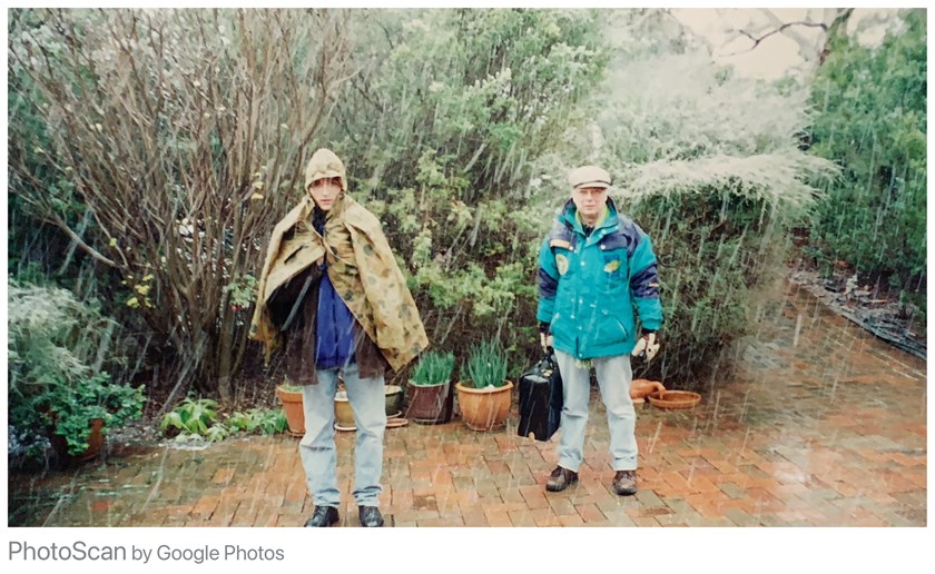 I have attached the photo of Hamish and me setting off for that snow game in 2000 from our home in O'Connor.