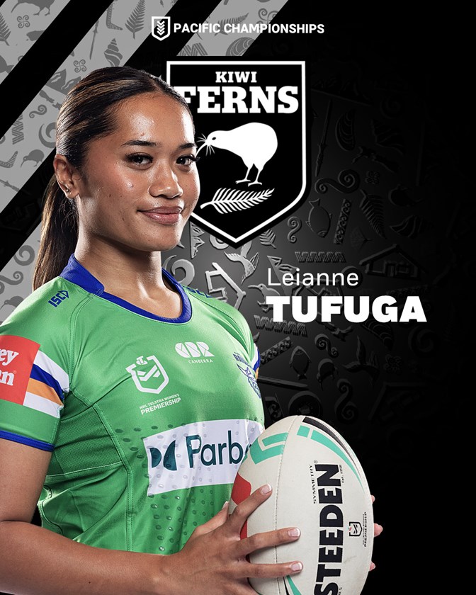 Raiders NRLW star centre Leianne Tufuga has been named in the Kiwi Ferns side for her third consecutive Pacific Championships.