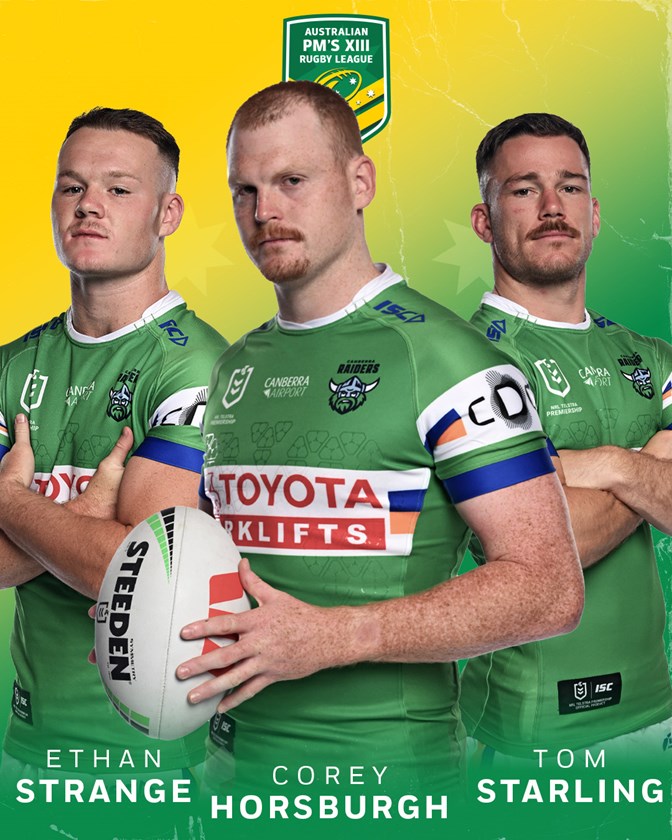 Raiders trio Ethan Strange, Tom Starling and Corey Horsburgh have been selected in the Prime Minister's XIII ahead of their clash with the PNG's PM's XIII this Saturday.