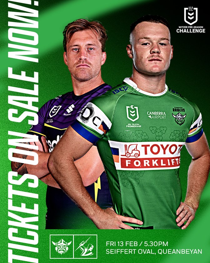 Tickets are now on sale for the Toyota Forklifts Canberra Raiders Pre-Season Challenge match at Seiffert Oval, Queanbeyan on Friday 13 February 2026.